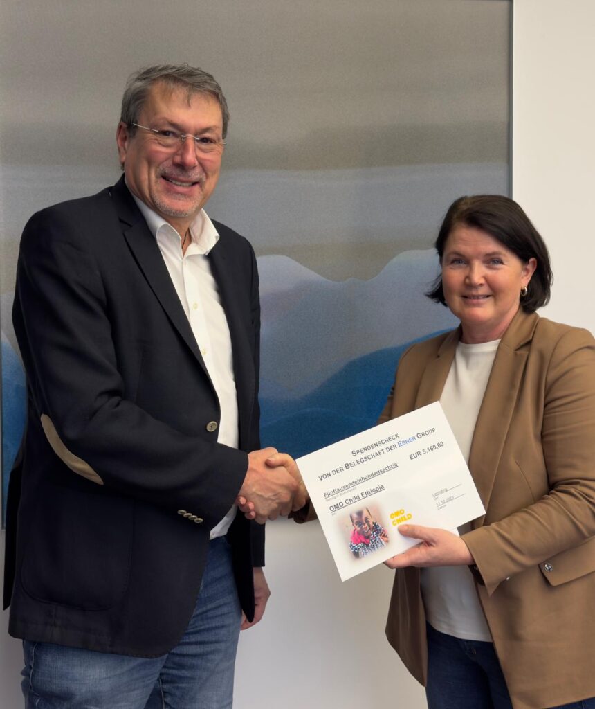 It has become a tradition at Ebner Industrieofenbau GmbH to collect money for OMO Child with two campaigns at the end of the year. For several years now, Christmas cards have only been sent electronically. This not only protects the environment, but also saves money, which is donated to OMO Child instead.