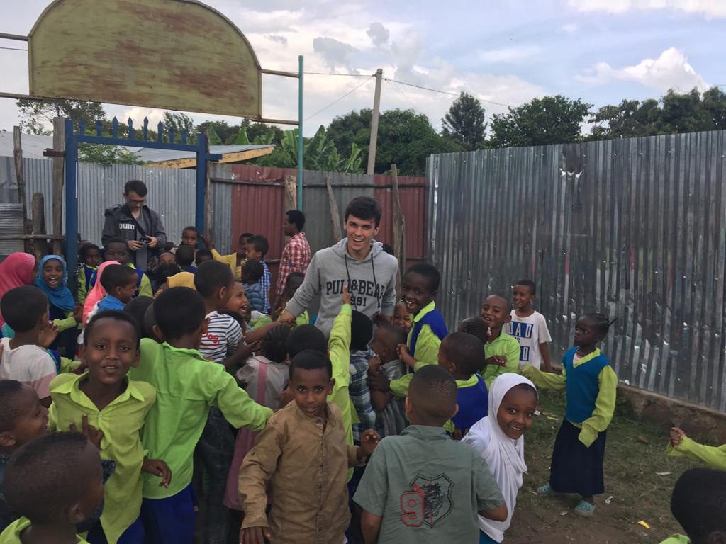 Nachdem die Kinder erst um 4 Uhr nachmittags wieder frei hatten, fuhren wir in der Zwischenzeit mit Ayko zur „Ethiopian Telecom“, das einzige Telekommunikationsunternehmen in Äthiopien, welches somit eine Monopolstellung einnimmt. Das wirkte sich zwar nicht gerade positiv auf die Simkartenpreise aus, aber um uns immer wieder mal zu Hause melden zu können, brauchten wir ein bisschen Internet. Dort wurden wir von Kopf bis Fuß überprüft, wie als würden wir durch den Flughafen Security Check durchgehen und dann noch beim Schalter ein bisschen ausgefragt. Nachdem wir alle drei unsere Simkarten hatten, ging es wieder zurück zum Heim, wo die Kinder schon ganz ungeduldig auf ein Fußballmatch warteten. Das Fußballspielen wurde über die ganze Woche schon fast ein tägliches Ritual, welches auch wirklich viel Spaß machte. Kurz darauf hielten wir auch schon unseren Englisch-Unterricht, bei dem wir einige Kinder wie Kulo, Abi, etc. schon besser kennenlernen durften und ihnen hoffentlich auch etwas beibringen konnten. Somit näherte sich der Tag auch schon dem Ende und dem Abendessen zu, bei dem es wieder köstliches „injera“ gab. „Injera“ kann man sich wie eine Palatschinke mit saurem Teig vorstellen, zu dem man verschiedene Saucen isst. Danach schlenderten wir zurück ins Zimmer und lasen noch ein bisschen in unseren Büchern bevor wir letztendlich alle drei einschliefen.